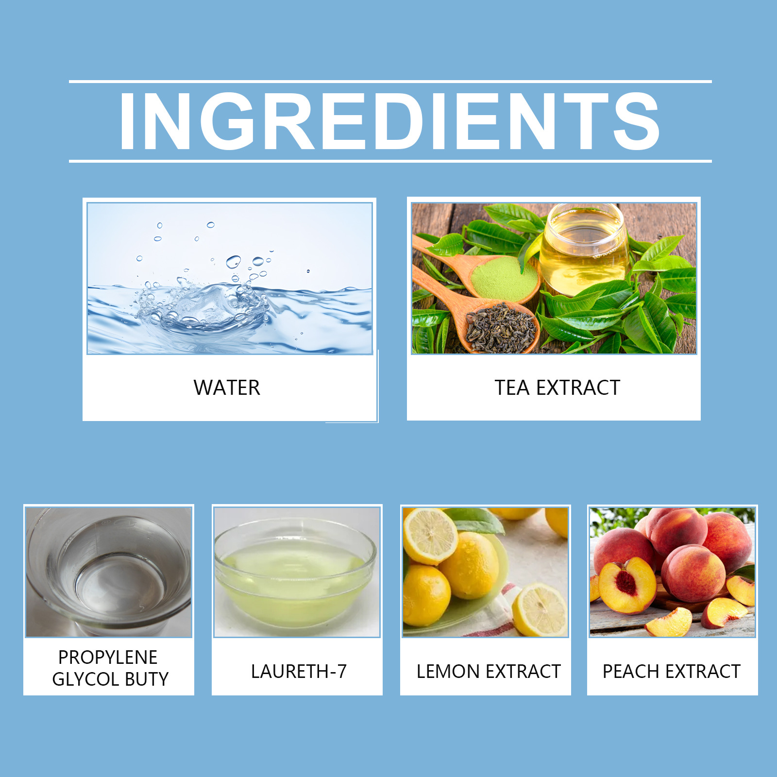 | TEA EXTRACT | Brightens the surface, gives a refreshing effect, and improves the bathroom environment after cleaning. |