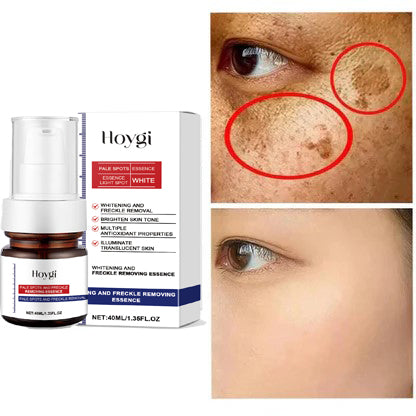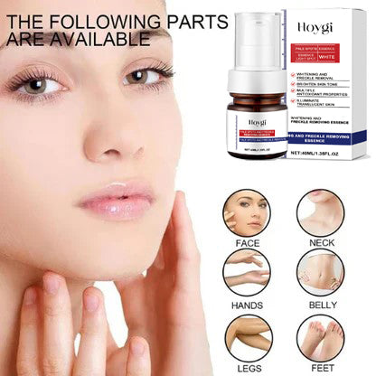 Say goodbye to stubborn freckles ❌️,uneventone 😟,and dullness 😭-this advanced essencevisibly fades dark spots ⭐,softens discoloration😠,and restores a luminous, even glowFormulated with gentle, skin-friendly botanicals,it not only targets hyperpigmentation⚡️ 4 butalso smooths fine lines ⭐,firms sagging areas💪and revitalizes tired-looking skin , making itideal for those dealing with sun-related damage,environmental stress(,and early signs of aging ?